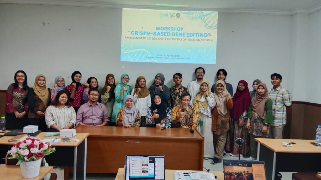 Pada hari Kamis, 21 Agustus 2025, Laboratorium Biomedik dan Laboratorium Kedokteran Terpadu (LKT) Fakultas Kedokteran Universitas Sebelas Maret (FK UNS) sukses menggelar workshop bertajuk “CRISPR-Based Gene Editing”. Workshop ini menghadirkan tiga pemateri ahli, yaitu Dr.sc.hum. Yohanes C. Wibowo, dr., M.Sc., Prof. Dono Indarto, dr., M.Biotech.St., Ph.D., AIFM, dan Alfin Titian Permata, S.Si., M.Si., yang membahas topik genetika terkini dengan pendekatan praktis dan aplikatif.