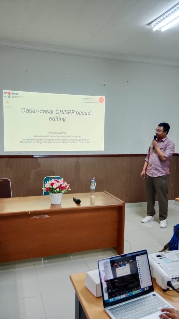 Dr.sc.hum. Yohanes C. Wibowo, dr., M.Sc. membuka sesi dengan membahas teknologi revolusioner CRISPR (Clustered Regularly Interspaced Short Palindromic Repeats). Peserta diajak memahami mekanisme kerja CRISPR-Cas9 dalam memotong dan menyunting DNA, serta aplikasinya dalam penelitian genetik. Sesi ini juga mencakup simulasi sederhana penggunaan CRISPR dalam penyuntingan gen pada kultur sel. - Pemeriksaan Kesehatan Berbasis Genetik